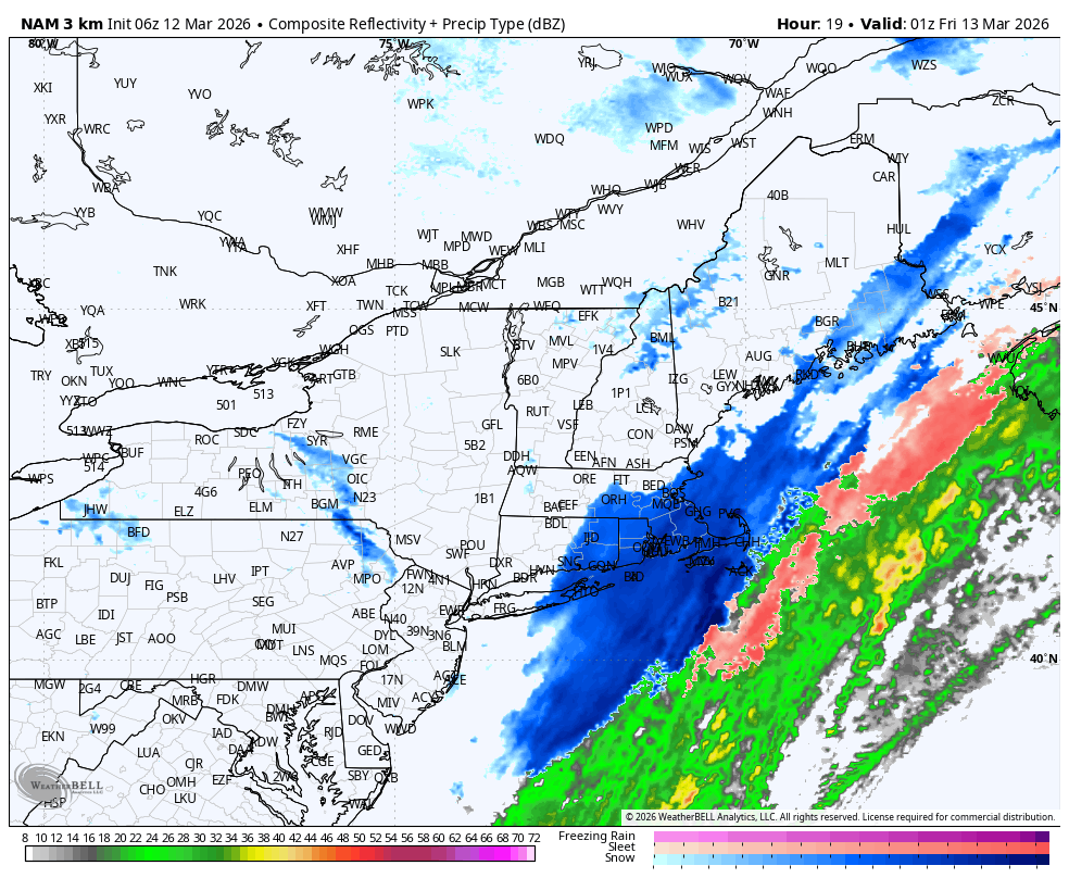 March being March. After several days of sunny and unseasonably mild weather, we’re heading back to winter later today and tonight. A cold front is cutting across the region this morning and will push offshore during the midday and early afternoon hours. On the backside of this frontal zone, much colder air is going to rush into the area on gusty west and northwest winds, with temperatures falling to the 30s late in the day (after holding in the upper 40s and lower 50s this morning). Unfortunately, a wave of moisture is going to pass through the region just after the arrival of colder air, yielding a period of rain, transitioning to snow, this evening. In fact, a couple of hours of steady moderate snow are possible through the first half of the night with a coating to an inch of snow possible. If you are headed out and about during the evening and nighttime hours, watch for slick roads and low visibility for a few hours. Things will dry out overnight and sunshine will return for Friday with chilly temperatures.